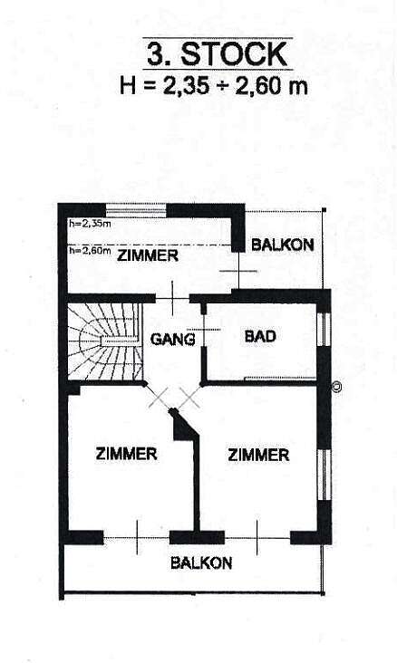 Al piano superiore si trovano tre camere da letto, tutte con accesso a un balcone, e un ampio bagno. Il piano interrato ospita, oltre al garage, due cantine aggiuntive, una delle quali è condivisa con la casa a schiera adiacente.